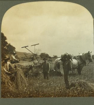 Cutting wheat with reaper and binder, Pennsylvania, U. S. A. c1905 1859?-1897