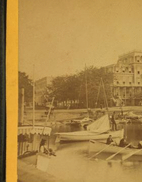 Whiting House, with sailboats and rowboats in foreground. 1870?-1885? [ca. 1875]