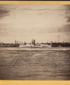 View of the East River, showing the steamer "City of Boston" under way. 1859?-1875? [ca. 1860]